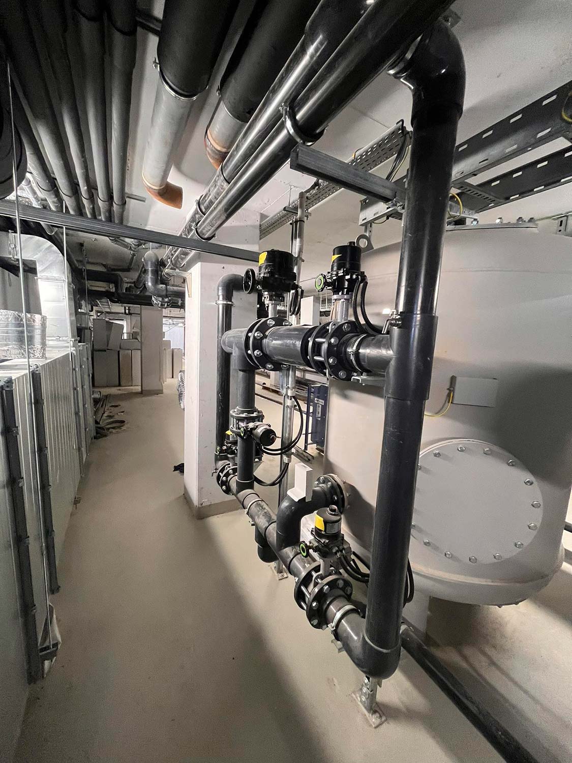 Bizonyos gépészeti elemeket a medencetest falába, néhányat pedig a padlóba helyezünk el. Ezeket hívjuk szerelvényeknek, amik már az építés során a helyükre kerülnek. A többi gépészeti elem a gépházban kap helyet.